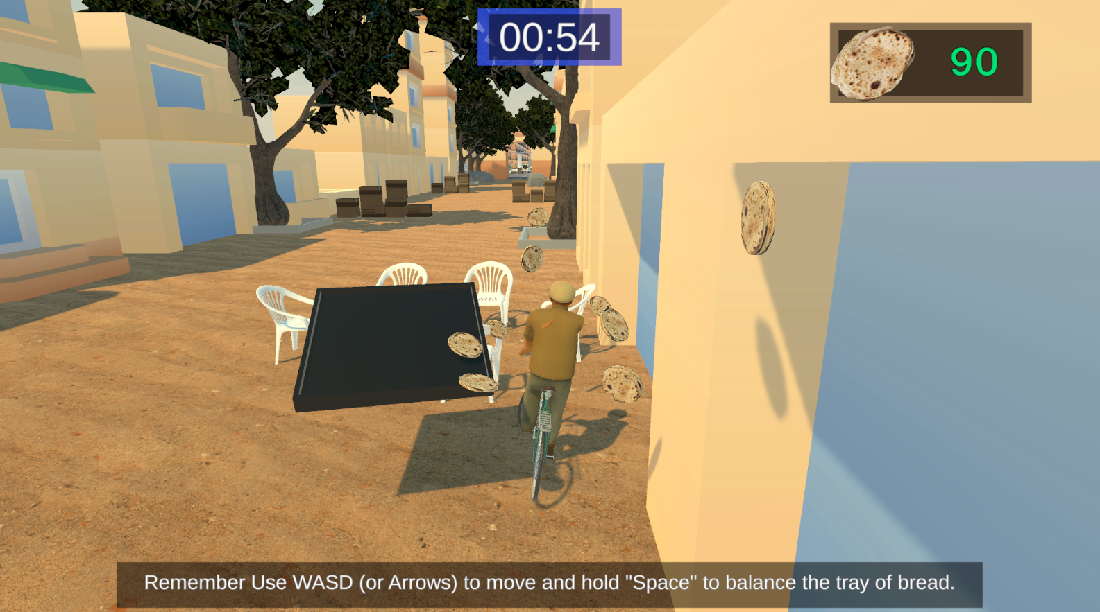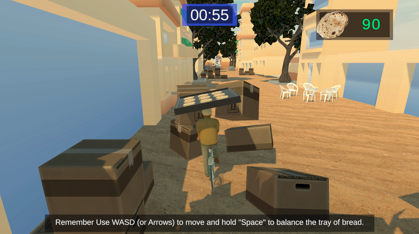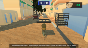 Bread Quest: The Impossible Delivery is a 3D physics-based game where players balance a tray of bread on their heads while cycling through the chaotic streets of Egypt. Players will race against time while trying to avoid various unexpected obstacles. The main objective of the project is to simulate the Egyptian bread delivery experience as an enjoyable and challenging 3D video game, while introducing some cultural scenes from modern Egypt.
